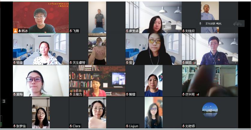 韩冰书记对分享依次进行了点评并鼓励大家在课程思政建设上要积极探索,大胆创新,取长补短,加强合作。特殊时期,教师更要保持良好的心理状态,不断提高自身修养,以人格魅力呵护学生心灵,以学术造诣开启学生智慧,绵绵用力,久久为功,努力作“经师”和“人师”的统一者。