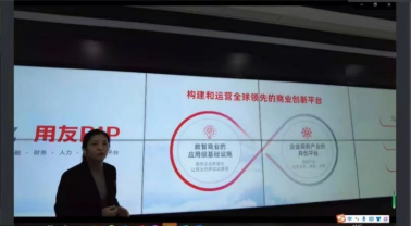 同学们通过用友数智企业体验馆宣传片,对数智企业有了初步概念,同时对数智企业的六大新范式、VIP商业创新平台的两大核心定位有了进一步明晰。