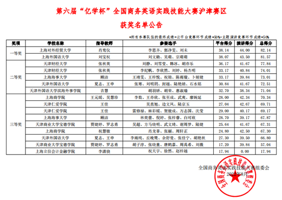 近日,人文学院商务英语系和英语系学生刘静、刘雪莹、韩冰、胡亦乐团队以及李纪帆、李欣然、杨杰明、刘婷团队参加了第六届“亿学杯”全国商务英语实践技能大赛,分别得到77.84和74.01的好成绩,均荣获沪津赛区二等奖,在天津市参赛高校中成绩名列前茅。商务英语系张秋英老师获得优秀指导教师称号。这是人文学院学生连续第三年参加该项赛事,并连续三次获奖。