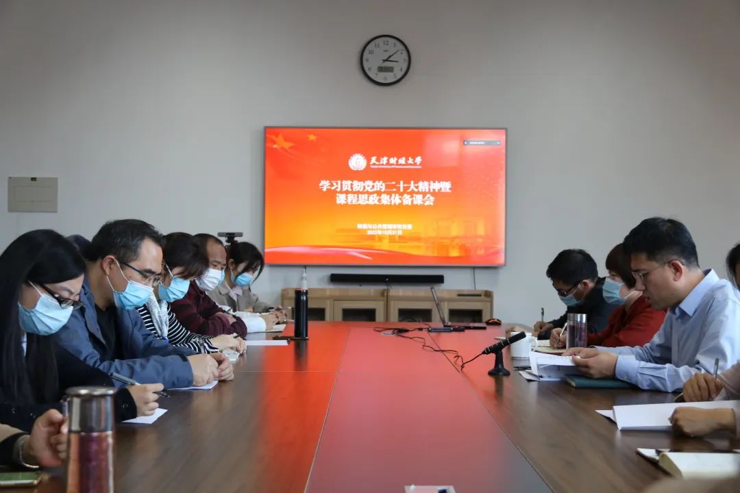 近日,财税与公共管理学院在N4308召开学习贯彻党的二十大精神暨课程思政集体备课会。学院党委班子成员、一流专业和一流课程建设团队负责教师、各系部教师代表及学生党员代表参加,其他教师线上参加。
