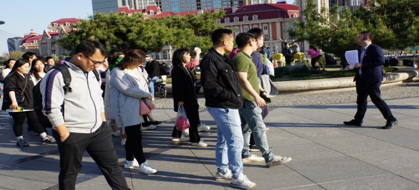 队伍从天津站出发,途径解放桥、解放北路、大沽桥、北安桥、进步桥、金汤桥、袁氏宅邸、冯国璋故居等知名建筑。其间,史洋老师为同学们讲述了海河沿岸的前世今生,并通过问题竞答等形式与大家深入交流互动,极大激发了同学们的学习热情,增强认同感,提升获得感,以体验式的授课方式真正让思政课“活”起来,达到入脑入心的育人效果。