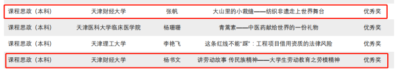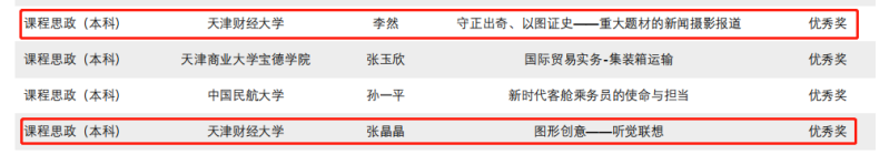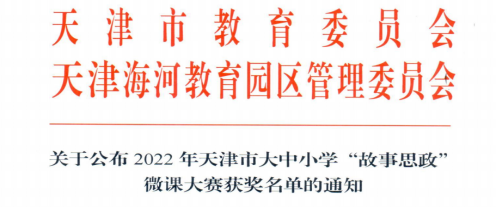 天津市教委、天津市海教园管委会近日公布了2022年天津市大中小学“故事思政”微课大赛获奖名单,我校马克思主义学院李慧、王双琳分别荣获思政课程本科组特等奖、二等奖;人文学院李然、财税与公共管理学院杨书文、艺术学院的张晶晶、张帆等四位教师分别荣获课程思政本科组优秀奖。