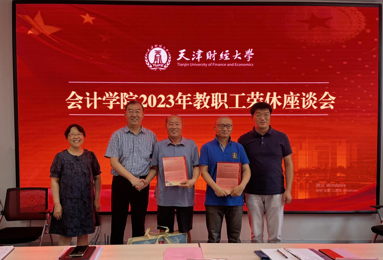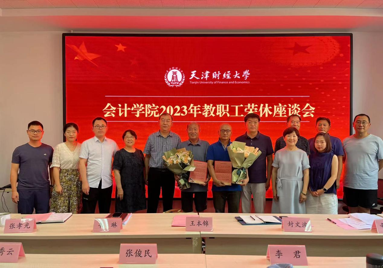 为深入贯彻落实习近平新时代中国特色社会主义思想,进一步弘扬尊师重教的优良传统,着力加强师德师风建设,努力把主题教育成果转化为推动发展实效,增强教师们的归属感、幸福感和荣誉感,近日会计学院党委为张俊民、李君两位即将退休教师举行荣休仪式。校工会常务副主席王本锦、学院党政领导班子成员、学院全体教职工参加了此次活动。荣休座谈会由学院党委副书记辛云主持。