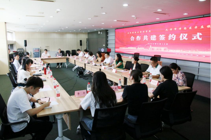 为认真贯彻落实党的二十大精神和习近平总书记关于教育的重要论述, 落实天津市“十项行动”要求,加强党建引领基层社会治理。以落实党中央、国务院关于新时代加强和改进思想政治工作的重要部署为抓手,有效整合社会资源,充分发挥学校和社区协同育人、服务群众的阵地效能,引领广大青年学生积极参与社区基层治理、服务群众,立志做有理想、敢担当、能吃苦、肯奋斗的时代好青年。不断深化“双向联系”“双向服务”的机制建设,本着组织共建、活动共联、资源共享的原则,2023年9月15日,天津财经大学法学院与天津市津南区辛庄镇合作共建签约仪式在A座403会议室顺利举行。天津市津南区辛庄镇党委书记朱宏力,党委副书记、镇长卢亚楠,党委副书记、统战委员刘海婷,副镇长宋内玲,公共管理办负责人张婷以及辛庄镇下设10个社区党支部书记等相关工作人员,法学院党委书记陈方,院长张勤,院党委副书记田雅志,院办公室主任张雅辉,院组织员李小红以及学工办辅导员任玮琪等师生代表参加了本次签约聘任仪式。本次会议由法学院党委书记陈方主持。