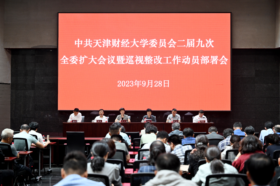 9月28日,中共天津财经大学委员会二届九次全委扩大会议暨巡视整改工作动员部署会在G座报告厅召开。校领导刘金兰、马岩、韩少波、姜国斌、李新涛出席。会议由校党委副书记侯洁主持会议。全体处级领导干部参加会议。