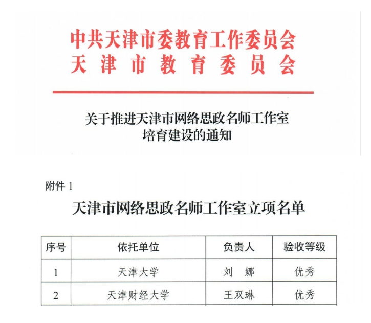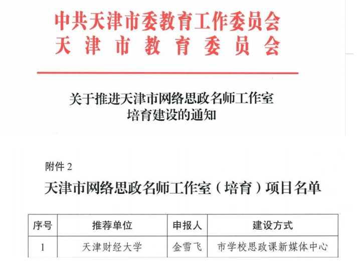 另外,马克思主义学院教师金雪飞牵头的团队同时获批为天津市网络思政名师工作室(培育)项目。