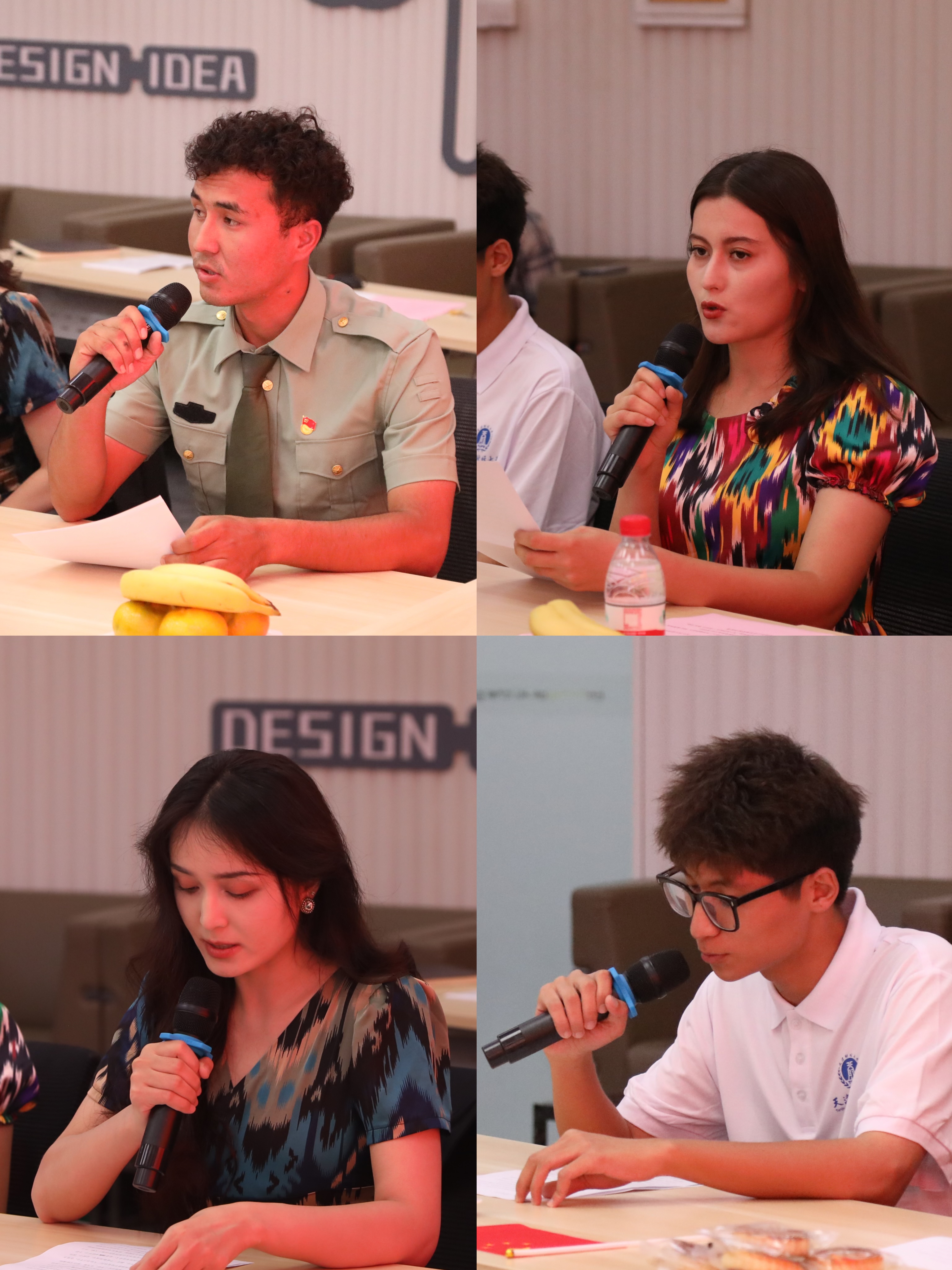 接着,四名新疆籍少数民族学生代表分别发言,分享了各自在校学习生活期间的心得体会。