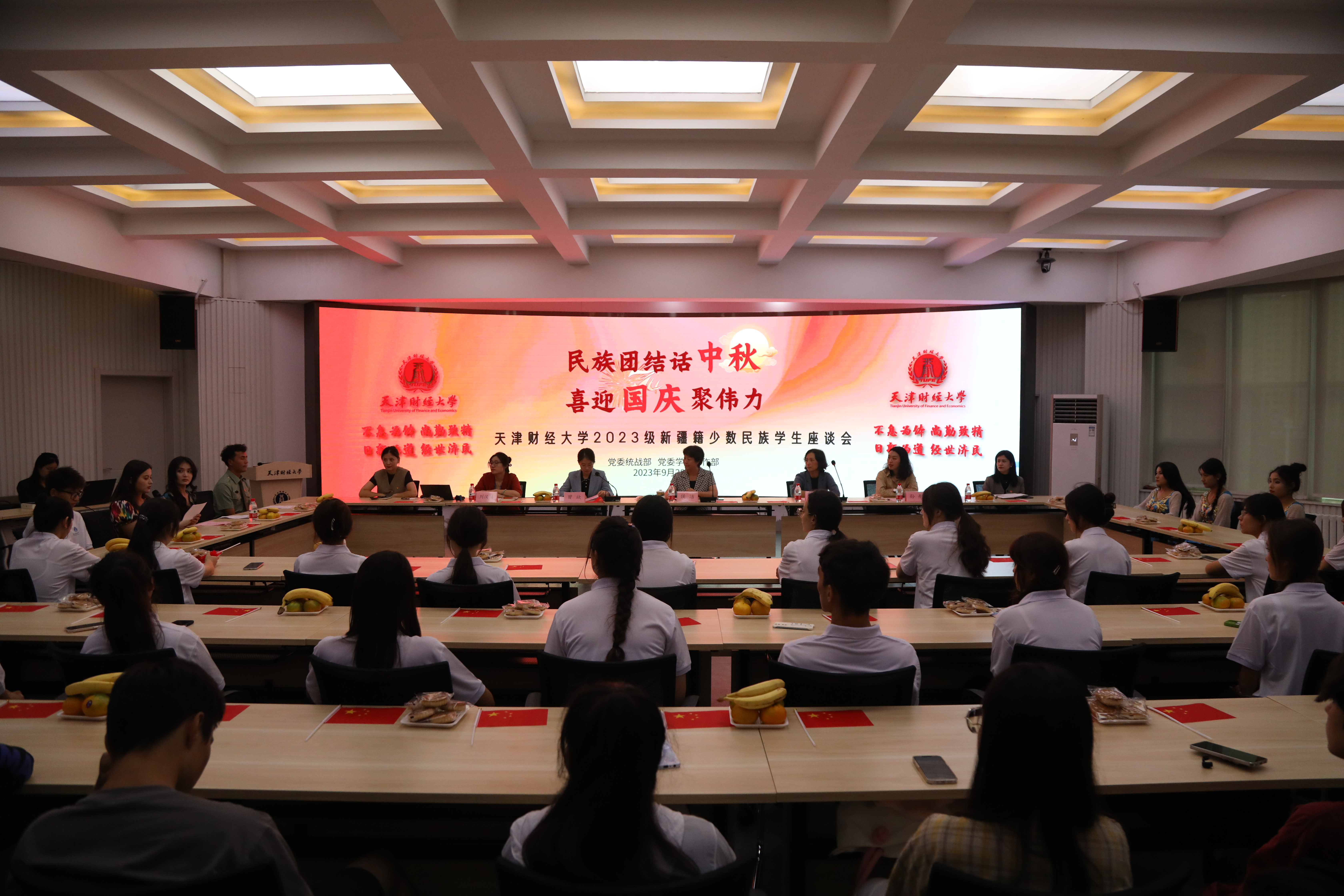 在伟大祖国七十四岁华诞和国庆中秋佳节即将到来之际,我校于9月28日下午召开2023级新疆籍少数民族学生座谈会。校党委副书记侯洁、校党委统战部、学工部、校团委相关负责同志、少数民族学生辅导员及来自各学院的2023级新疆籍少数民族学生代表共聚一堂,亲切交流。