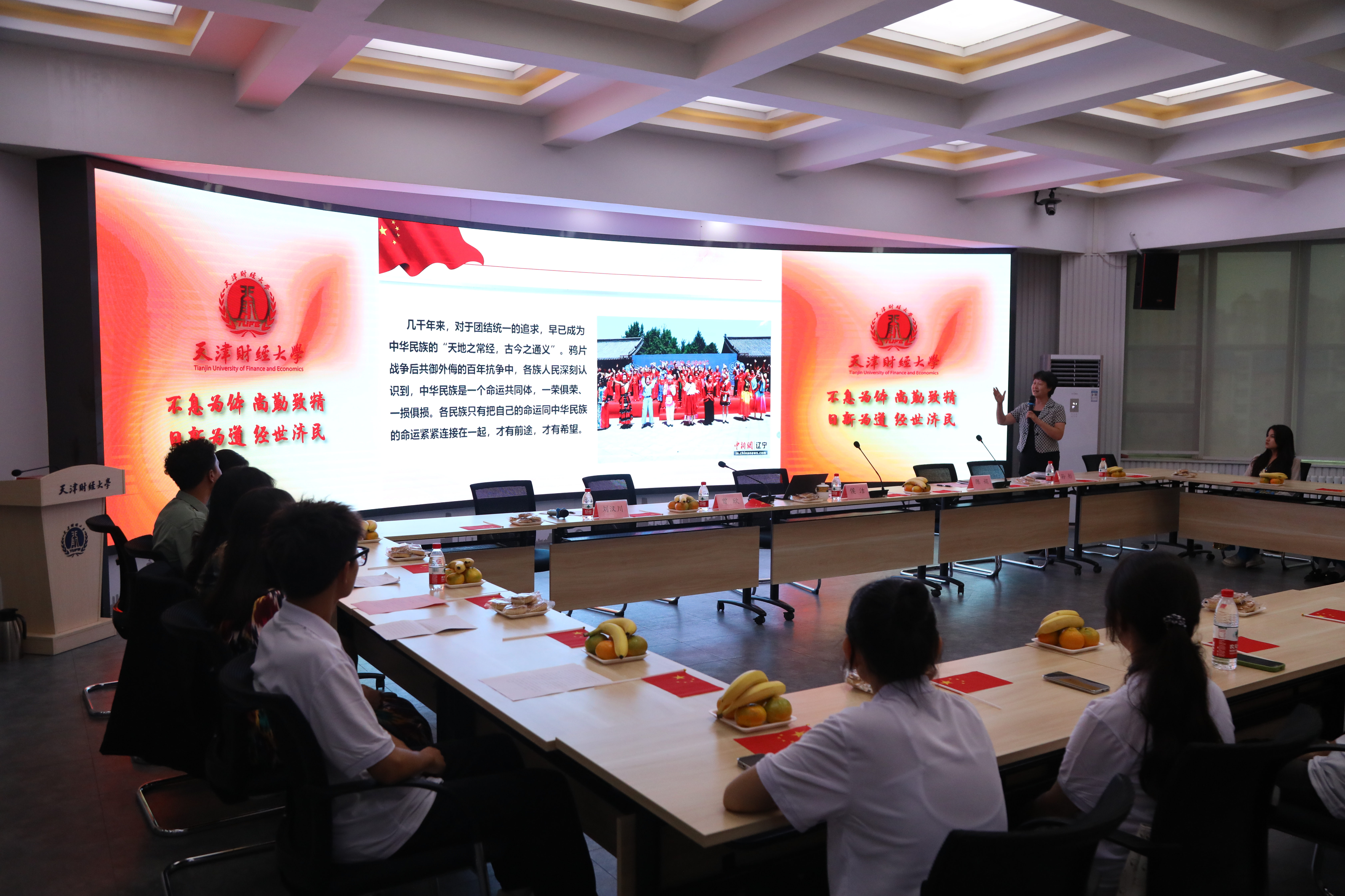 发言环节结束后,侯洁老师代表校党委,对全体新同学的到来表示热烈欢迎,对新疆籍少数民族学生在校期间取得的优异成绩表示衷心祝贺。随后,她以《铸牢中华民族共同体意识,做担当民族复兴大任的时代新人》为主题,面向与会师生讲授民族团结思政课。她从认知、情感、意志、行为等四个维度,阐释了铸牢中华民族共同体意识的丰富内涵,回顾了在中国共产党的正确领导下,全国各族人民共同团结奋斗,共同繁荣发展的光辉历史。随后,她通过列举时代楷模黄文秀的先进事迹,生动诠释了当代青年所应具有的时代担当;通过讲述天财人传承接力的奋斗故事,深入解读了蕴含于天财精神中的家国情怀。她强调,各族青年必须将对国家和民族的热爱转化为实际行动,希望同学们胸怀祖国有大爱,刻苦钻研学本领,锚定目标勇毅行,团结互助做表率。最后,她勉励大家牢记习近平总书记教诲,像石榴籽一样紧紧抱在一起,手足相亲,守望相助,共同谱写新时代民族团结的青春之歌!