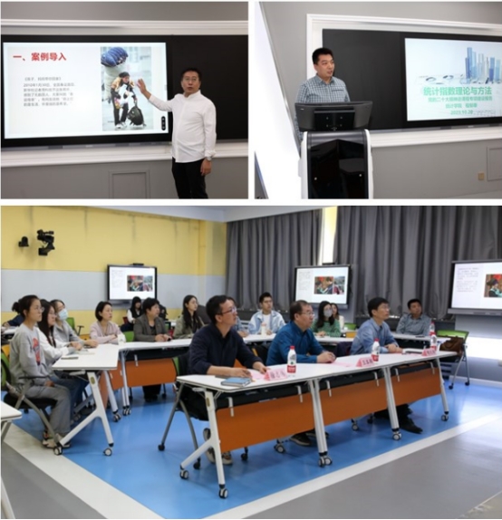 程郁泰老师以《统计指数理论与方法》课程为例,介绍了以案例实践驱动学生统计思维训练与社会责任感,将党的二十大报告中的新思想、新观点、新论断融入课堂教学的实践,较好地达成了统计教学、应用实践与思政教育相互支撑。