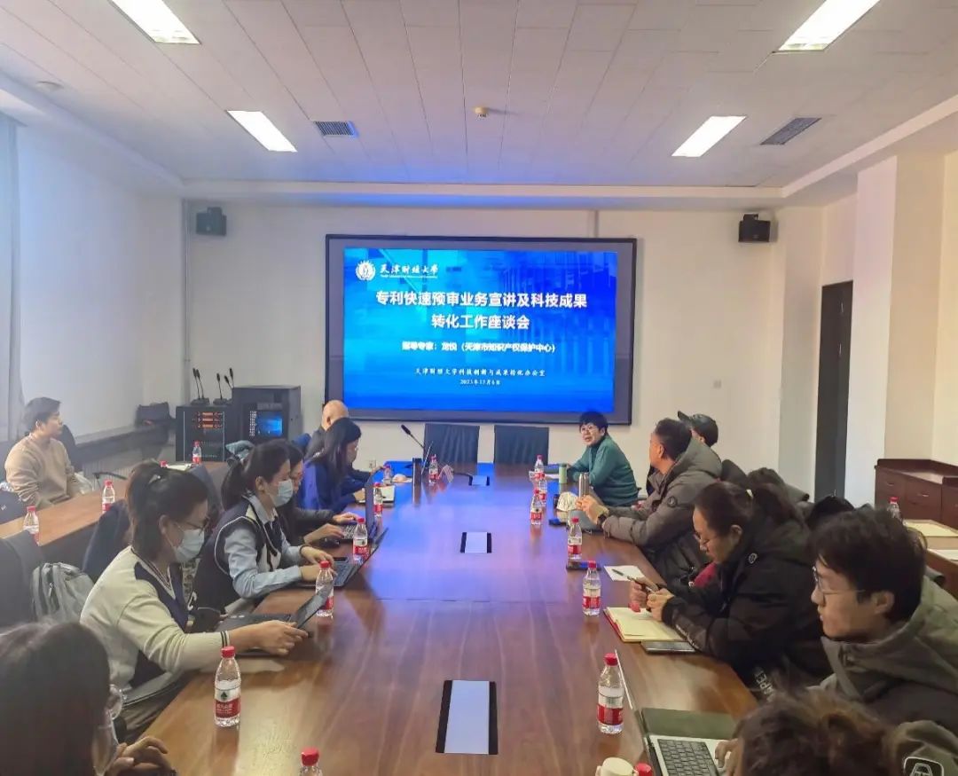 为进一步优化知识产权公共服务,推进专利快速预审,指导、帮助我校教师了解并享受相关政策红利,我校成果办于近日举办“专利快速预审业务宣讲及科技成果转化工作座谈会”,并邀请天津市知识产权保护中心副主任龙悦来校指导。理工学院、艺术学院、统计学院及金融学院师生代表20余人参会。会议由成果办主任李小妹主持。