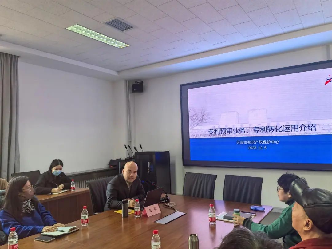 龙悦主任介绍了天津市知识产权保护中心基本情况,重点围绕专利检索方法、专利预审业务流程与优势、成果转化方式进行讲解,并结合具体案例分析了高质量专利撰写及专利预审注意事项等内容。座谈阶段,理工学院华斌、王朕、李玉芝老师以及艺术学院张帆老师就知识产权保护、专利“一案双申”、纯算法专利申请等问题与专家进行沟通交流。