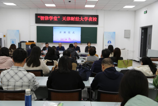 天津财经大学党委常委、副校长马亚明,天津市教委继续教育处副处长王勤,二级调研员卢明,夜校相关负责人、班主任与首期学员共同参与仪式。开班仪式由继续教育学院院长郑利主持。
