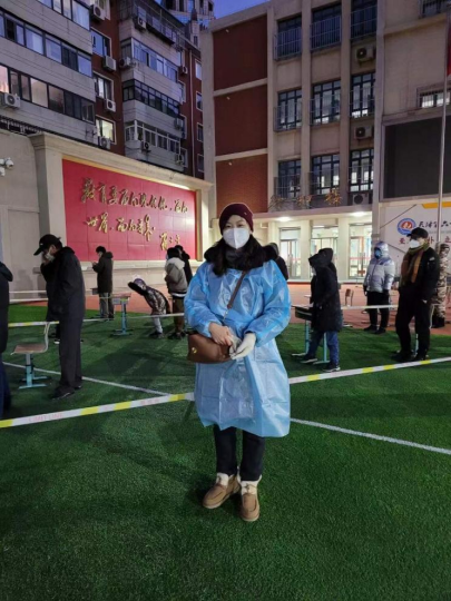 从1月9日至12日,学院有更多的教师不断参与到所属社区“大筛”志愿服务工作中,确保核酸检测工作的有序进行。何斌副院长在河西区振财里参加了两次志愿者服务工作,10日早上6点开始坚守志愿者岗位直到晚上10点,长达16个小时,认真做好社区居民核酸信息登记、维持核酸检测队伍秩序等,充分发挥了党员领导干部的带头作用。在津南区象博豪庭社区,胡国强老师从早上6点半开始就帮忙搭建核酸检测的基础设施。许国艺老师在新丽里社区挨家挨户通知辖区居民做核酸检测,认真做好居民核酸信息登记工作。毕晓方老师从早上6点出门在61中核酸检测点负责检测通道疏导居民、维持队伍秩序,直到晚上7点结束了一天的志愿服务工作。还有吕志明、李海英、盛常艳老师们忙碌的身影活跃在社区核酸检测志愿服务队伍中。