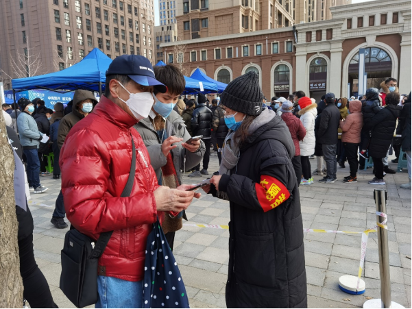 人文学院研究生党支部书记孙婧在1月10日主动加入社区防疫志愿者队伍,在采集点疏导排队、维持秩序,引导居民扫码登记个人信息,答疑解问,谨记党员职责与使命,力所能及协助医务人员与社区工作者高效有序进行核酸大筛工作。