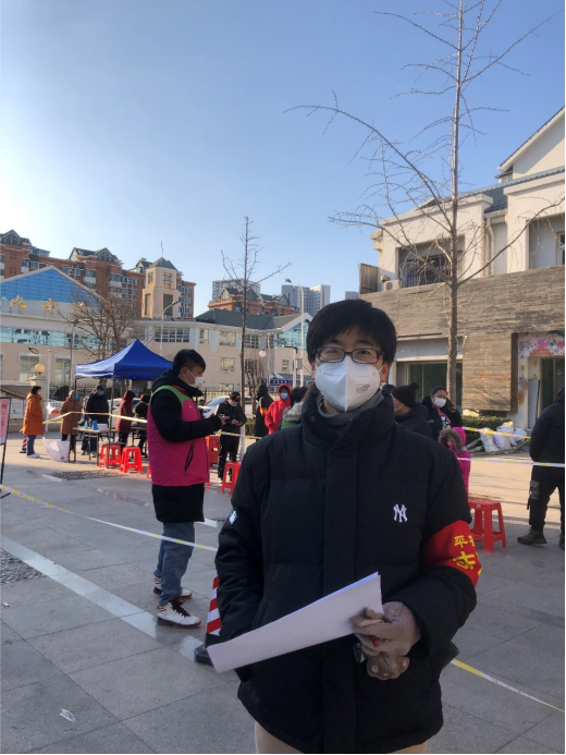 人文学院大学外语教学部毛润卿老师在二筛和三筛中,参与下沉社区工作。第二次筛查期间毛老师在寒风中的夜晚维持参检人员秩序,当在队伍中看到自家宝宝的那一刻,毛老师由衷的开心。三筛时毛老师挨家挨户敲门通知小区成员参加核酸检测,动员小区居民积极参与检测,用实际行动默默为城市防疫做出奉献。