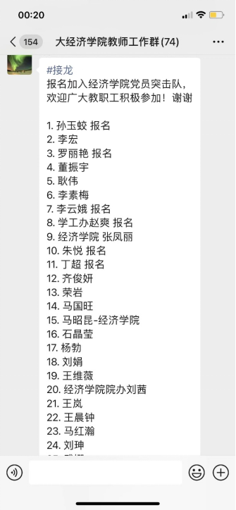 为进一步发挥基层党组织战斗堡垒作用和师生党员先锋模范作用,按照校党委组织部要求,学院以工作区域为具体点位设立党员责任区,党委书记带头做责任区负责人,坚决做到守土有责、守土担责、守土尽责,共同筑牢学校疫情防控网。为充分发挥先锋作用、带头效应,在学院领导班子带领下,共39名教职工自愿报名加入经济学院党员突击队,随时准备参加社区和学校防疫工作。严格落实包联机制,抓实党员领导干部包专业院系、包重点区域,党员辅导员包班、包人、包宿舍等工作机制,落实“两个立即”部署要求,确保党的工作覆盖到每名师生员工。