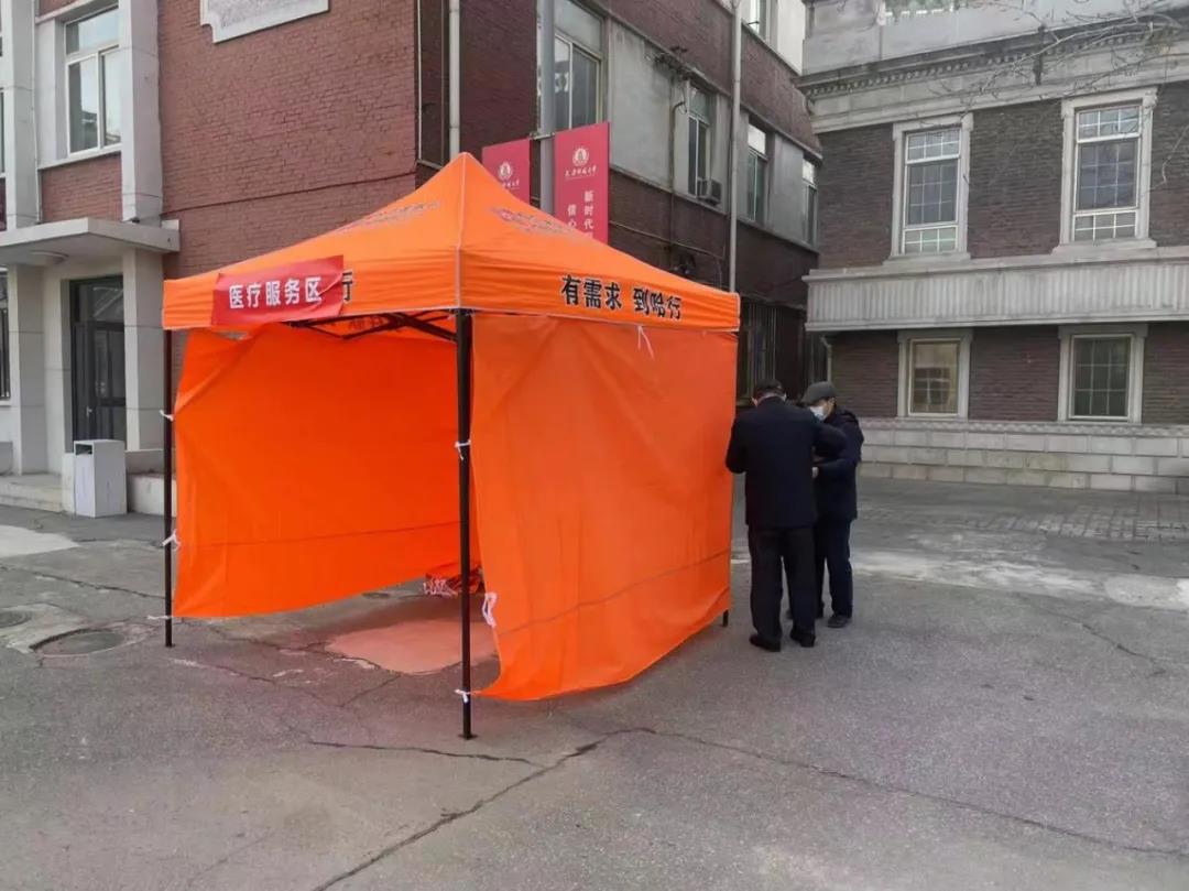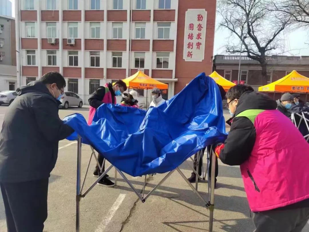 1月8日,天津突发新冠疫情,继续教育学院积极响应市委市政府号召,在校党委的支持下,通力配合共建单位河西区桃园街照耀里社区居委会,将马场道校区开放为核酸检测点,方便社区居民进行核酸检测。1月9日上午,学院教师与社区工作人员和志愿者一起,搭好核酸检测用的帐篷、设置好检测通道,做好各项准备工作。下午开始对社区居民开放,进行核算检测,直至深夜十一点关闭。截止到11日上午,检测工作安全、平稳、有序开展,共为3500余名社区居民进行核酸检测,学院多名教职工全程协作,提供后勤保障服务。