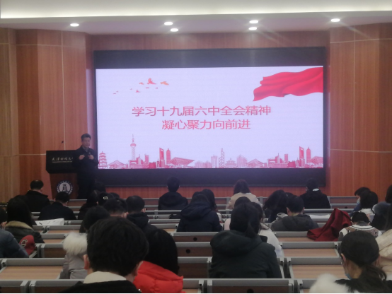 为深入学习宣传贯彻党的十九届六中全会精神,切实把师生的思想和行动统一到全会精神上来,按照党史学习教育工作安排,12月17日,商学院党委书记彭正银在综合楼Z001进行学习贯彻党的十九届六中全会精神宣讲,全体教工参加报告会。