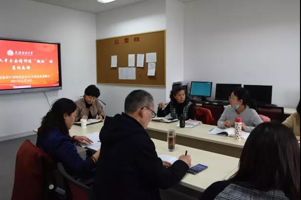 发挥马院学科专业以及理论优势、师资优势,积极主动推进学习和宣传十九届六中全会精神。青年教师金雪飞副教授应河北区委组织部邀请,为1500多名社区工作者进行宣讲。思政课教师将陆续向各学工办、理论社团开展全会精神宣讲;部分教师为企事业单位开展宣讲。