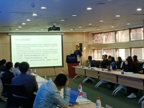 会议第一阶段由天津财经大学金融学院何枫副教授主持,天津财经大学金融学院副院长温博慧教授为会议发表致辞,温博慧教授在致辞中向参会人员介绍了天津财经大学金融学院的学科和专业发展现状,对后疫情时期的金融科技学术研究发展进行了展望,希望通过此次会议能够促进各兄弟院校之间的交流。南开大学商学院古志辉教授就“儒家文化与公司治理,公司金融与公司治理”发表了主题演讲,古志辉教授长期致力于儒家文化与公司治理的研究,古教授就儒家文化与公司金融的问题发表观点,向参会学者介绍了文化与金融的研究范式,并提出要理解历史典籍的内涵,而不是一味的实证。Wiley出版社期刊内容发展编辑王馨蕊就“期刊投稿流程及评审”发表了主题演讲,王馨蕊编辑向参会师生介绍了投稿流程、同行评审、评审过程以及特刊出版的流程。江西财经大学产业经济研究院符通副教授发表了以“Managerial and Decision Economics特刊论文选题及征稿指南”为主题的演讲,符通副教授在演讲中介绍了期刊的选题规范,并提出写文章不是单纯的追逐热点问题,但可在热点问题背景之下重新审视之前的研究问题,倡导提高中国学者的国际影响力。