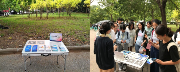 学生线上交流的有益尝试,保持了学校国际合作交流的温度和频度,成为在地国际化的生动实践。为展示学生交流优秀成果,浓厚学校国际化氛围,学生交流系列宣传活动于日前在校园陆续展开,引导帮助学生进一步了解在校交流学习机会及其对个人学业发展的助益作用。活动现场陈设的交流项目海报和展页,吸引了众多学生驻足关注,现场互动答疑得到了学生们的积极参与。