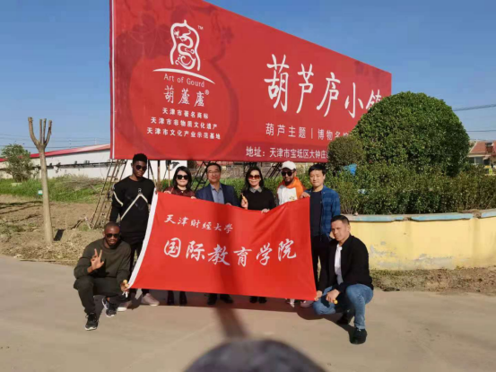 为落实《来华留学生高等教育质量规范(试行)》,更好地实现高校和企业的产学研合作,助力乡村振兴,实现资源共享、优势互补、协同创新,2021年4月28日,天津财经大学国际教育学院与天津市宝坻区大钟庄镇牛庄子村、葫芦庐(天津)文化传播有限公司就共建留学生产学研社会实践基地事宜举行了挂牌暨签约仪式。同时参加本次签约仪式的还有国际互联网+创业大赛项目的中外师生。师生们就如何振兴乡村经济,“服务三农、助农增收”,大力发展“一村一品、一村一特色”进行了详细的调研及考察。