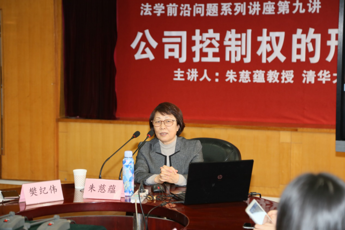 应法学院邀请,2020年12月11日下午,清华大学法学院朱慈蕴教授于综合楼名人报告厅作了题为“公司控制权的形成与制约---以差异化表决机制为主”的专题学术讲座。该讲座系法学院系列名家讲堂“法学前沿问题系列讲座”的第九讲。讲座由法学院副院长樊纪伟副教授主持,法学院院长张勤教授、崔金珍副教授、法学院研究生与本科生以及北京炜衡(天津)律师事务所裴跃律师、北京市东元律师事务所孙倩律师等计80余人参加了讲座。