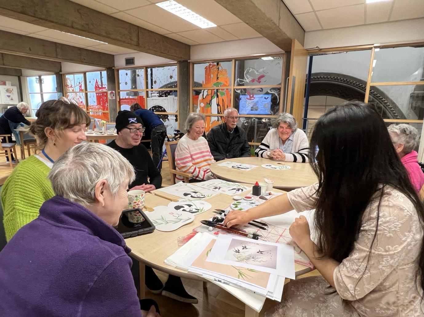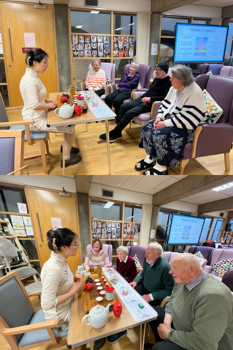 近日,苏格兰商务与交流孔子学院应爱丁堡李爱锐慈善中心邀请,为老年人日间照料中心举办汉语学习与中国文化活动。孔院中方员工展示了中国茶艺和书法绘画,中心老人非常喜爱中国茶和渊远流长的茶文化,绘画大熊猫和学写“竹”字也吸引了大家的注意力,纷纷参与其中。通过活动,老年人了解了汉语的基本声调和笔画,更好地认识了中国文化。
