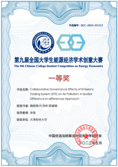 在全国总决赛中,刘力菲、王玲、赫昭然展示的《清洁发展机制的经济增长效应评估——基于中国县域实证数据的分析》斩获本科生组全国特等奖;魏晓晴、叶茂林、郭媛媛呈现的《Collaborative Governance Effects of Emissions Trading System (ETS) on Air Pollution: A Spatial Difference-in-differences Approach》斩获本科生组全国一等奖和最佳碳交易与碳市场研究单项奖(全国只有两个)。此外,本届大赛中,我院本科生组还有2个团队获全国三等奖,研究生组2个团队获全国三等奖。天津区域选拔赛中,我院获省级一等奖2项、二等奖5项、三等奖9项。