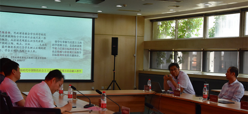 会议交流环节共分为三个阶段。第一阶段,马克思主义学院习近平新时代中国特色社会主义思想概论教研部主任王楠从开课情况、教学内容、教学实施及特色做法等方面,汇报了《习近平关于社会主义社会建设重要论述》课程的建设情况。第二阶段,财税与公共管理学院副教授刘志辉从教学目标、教学内容、教学特点和课程考核等方面介绍了《习近平总书记关于社会主义建设重要论述》课程的基本情况;经济学院教师杨善奇从教材选取、教学设计特色和考核过程等方面介绍了《习近平经济思想》课程的基本情况;人文学院副院长张建东从教材和教学资源选取、教学内容和特色等方面介绍了《习近平外交思想》课程的基本情况;法学院副教授任岳鹏从开课情况、教学内容、教学实践及特色做法等方面介绍了《习近平法治思想》课程的基本情况。第三阶段,教务处负责同志以及各专业学院教学院长就习近平新时代中国特色社会主义思想专业必修课的建设过程、教学内容和教学实施等进行了充分交流。