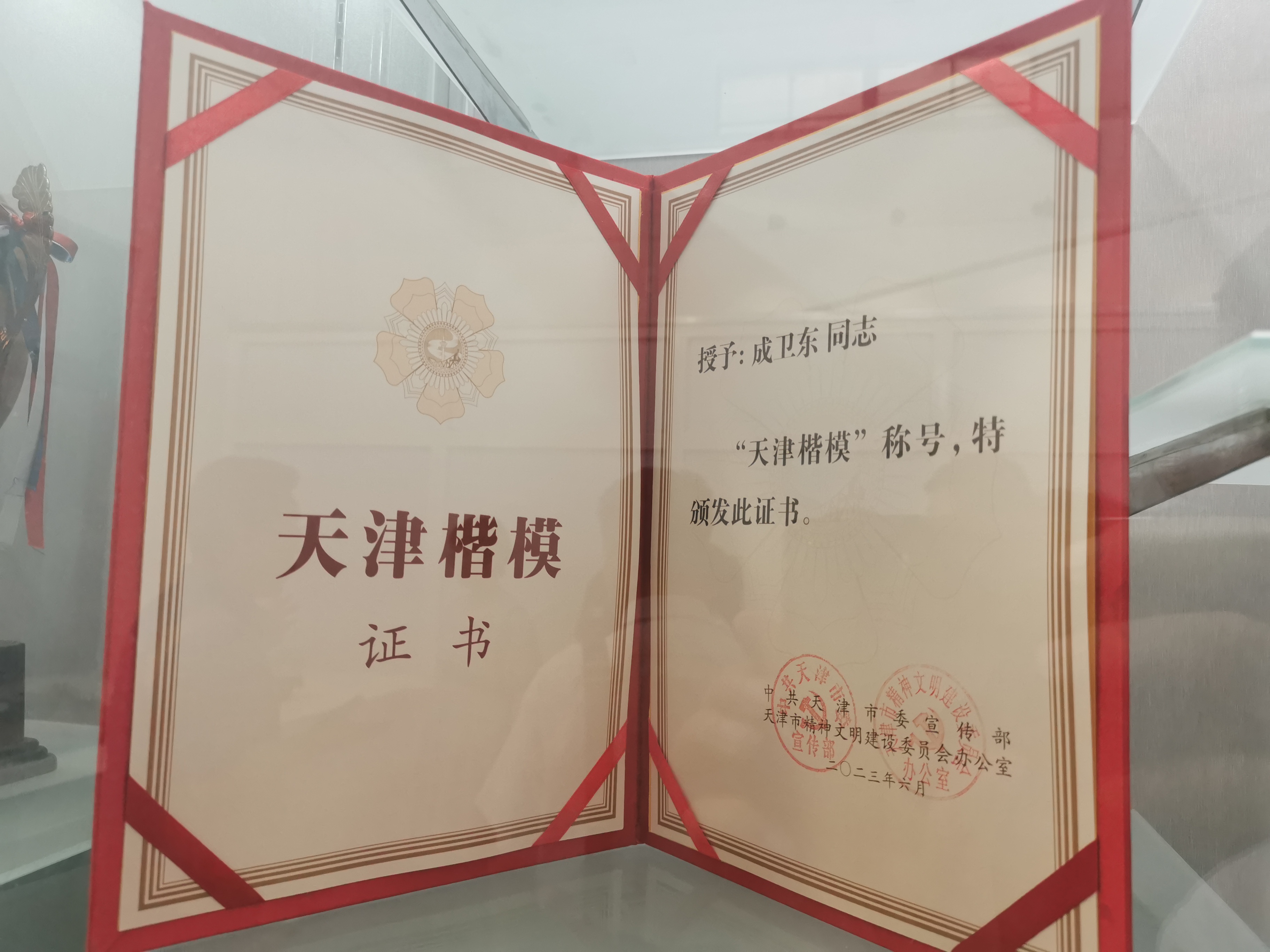 图6 成卫东天津楷模证书