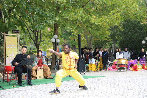 音乐会由四位来自世界各地的留学生主持,节目兼具经典韵味与跨界创意,亮点纷呈。《世间始终你好》等一曲曲武侠金曲唤起集体记忆,《云宫迅音》等传统经典曲目以新颖编排彰显文化活力,《男儿当自强》等曲目更传递出昂扬向上的青春力量。来自贝宁的留学生周连城带来的武术长拳表演刚劲有力,将中华武术的精气神与舞台艺术巧妙融合,瞬间成为全场焦点,赢得阵阵掌声。