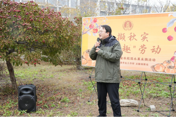 活动开始前,后勤保障处处长董君瑞表示采摘活动不仅是一次有趣的体验,更是一堂生动的劳动教育课,学生走出课堂,亲近自然,感受春种秋收的规律和“一份耕耘、一份收获”的真谛,希望同学们在采摘中感受劳动的艰辛和快乐,理解劳动成果的来之不易。