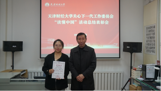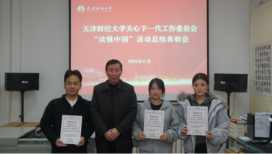 在本年度“读懂中国”活动中,校关工委统筹规划、精心部署,各二级关工委积极响应、广泛动员,天财学子踊跃参与,以“五老”先进事迹为创作核心,涌现出一批主题鲜明、情感真挚的优秀作品。校关工委组织校级评审,将获奖作品择优报送市教育系统关工委参与评选,获得多项荣誉:财税学院金智仁、郝思源同学的《墨痕未干——与时代的教育答卷》,会计学院齐政尧同学的《宝震精神照前路》荣获天津市教育系统征文类二等奖;财税学院金智仁、易俊杰同学的《春蚕化丝:织就教育强国锦绣》获天津市教育系统征文类三等奖;商学院刘瑨同学的《弘大师教育精神奏爱党报国旋律》获天津市教育系统视频类优秀奖。财税学院关工委、会计学院关工委及商学院关工委获得校级优秀组织奖。