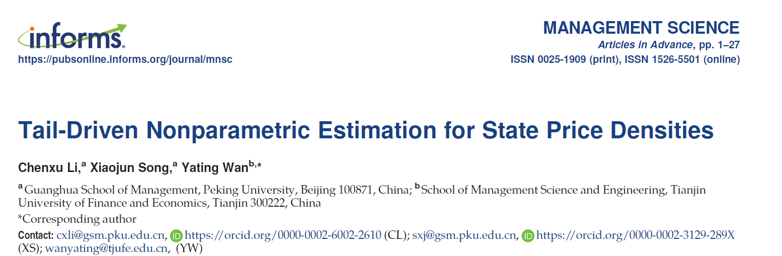 新岁启华章,科研捷报传。值此丙午马年新春之际,我校管理科学与工程学院传来重磅学术喜讯:学院万雅婷老师以通讯作者身份,在国际顶级期刊Management Science发表学术论文“Tail-Driven Nonparametric Estimation for State Price Densities”。这既是其深耕科研领域、持续探索创新的重要成果,更充分彰显了我校青年教师扎实的科研功底与蓬勃的学术发展潜力。