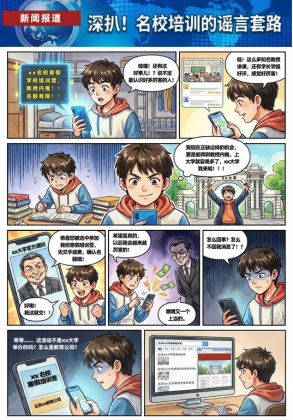 《深扒!名校培训的谣言套路》聚焦高校招生领域的网络谣言陷阱,警示学生及家长警惕“教授内推”“内部名额”“低分保录”等虚假招生信息,避免因升学焦虑陷入谣言陷阱。