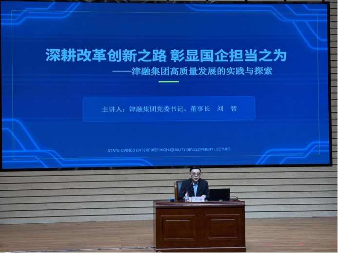 讲座还探讨了在党的二十届四中全会战略指引下,国有企业如何进一步增强核心功能、提升核心竞争力,以服务国家和天津发展战略全局,并实现自身高质量发展。刘智书记结合天津“三新”“三量”工作部署,从四个“深刻把握”等维度分享了津融集团在推动不良资产盘活处置、上市公司重组重整、城市更新、战略新兴产业培育等方面的成功案例和实践经验。