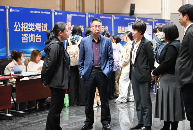 校党委书记赵鸣、校党委副书记马岩一行亲临双选会现场,与法律服务、金融投资相关领域用人单位代表深入交流,了解用人单位关于法治人才的需求情况、岗位发展路径及校企协同发展建议,着重推介了我校法学毕业生在专业能力、综合素质方面的优势特点,对用人单位长期以来的支持表示感谢。同时,与现场毕业生、研究生导师亲切沟通,询问同学们的求职进展、岗位匹配度及签约情况,耐心倾听大家在择业过程中遇到的困惑与期待,勉励同学们牢牢把握春季招聘的宝贵窗口期,将课堂所学的法理知识与法治实践深度融合,积极到基层法律岗位和法律服务一线淬炼本领,努力成长为德法兼修、明法笃行的高素质法治人才。