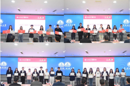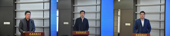 天津市教委高教处处长徐震、天津财经大学副校长陈旭东、天津光泰光电科技(集团)有限公司董事长饶古清分别致辞