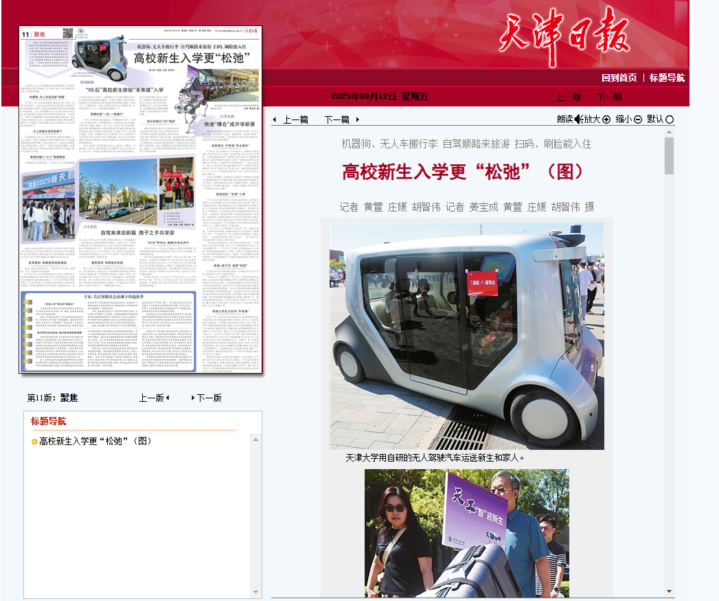 天津日报、津云报道我校迎新季 智能化深入校园,新生入学松弛便利