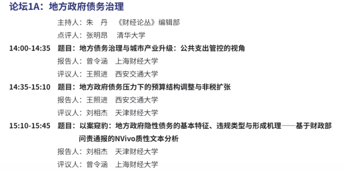 论坛以“深化财税体制改革的理论创新与实践路径”为主题,设置多场平行论坛和研究生论坛。其中,竹志奇老师受邀主持了主题为“财政压力与政策协同响应”的平行论坛,并分享了题为《压力还是红利?人口老龄化何以影响地方政府债务融资成本》的研究。