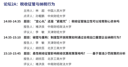 王一欢老师参加了以“税收政策的经济与社会影响”为主题的平行论坛,分享了自身研究《增值税加计抵减与企业充分吸纳就业——基于规范税收优惠政策的视角》。
