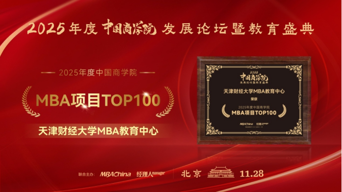 “2025年度中国商学院杰出院长奖”旨在表彰在商学教育、学术研究、学院管理与社会服务等方面取得卓越成就,并对推动中国商学教育发展作出突出贡献的商学院院长。“MBA项目TOP100”以教学质量、课程创新、师资力量、学生反馈、社会影响力五大维度为核心指标进行评价,旨在展现中国商学院MBA教育的综合实力和教育变革时代下的责任担当。这也是商学院MBA项目连续多年入选该榜单。其中,MBA卓越项目(非全日制项目)凭借数字化、人工智能与新财经教育相融合的突出成果,以及在实践教学领域的探索和创新,荣获“2025年度中国商学院特色MBA项目奖”。