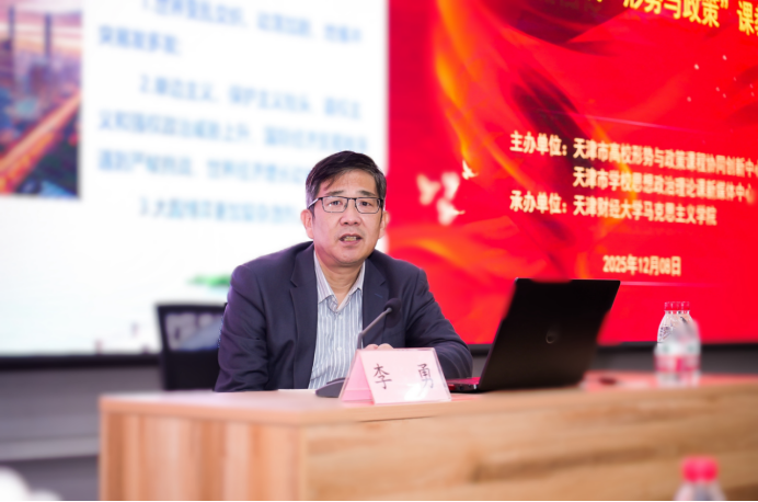 为深入学习贯彻党的二十届四中全会精神,及时将党的最新理论成果和战略部署融入思政课教学,12月8日,天津市高校形势与政策课程协同创新中心、天津市学校思想政治理论课新媒体中心联合在我校举办高校“形势与政策”课教师培训。本次培训旨在全面落实《“形势与政策”课教学要点(2025年下辑)》要求,提升全市高校“形势与政策”课教师的教学能力与育人水平。来自全市多所高校的课程骨干教师参加培训。培训由天津财经大学马克思主义学院院长杨书文教授主持。